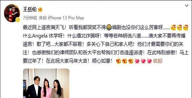有些自媒体甚至把王诗龄拉下水,编出她因家事休学的故事。可以说,网络造谣能力已经到了不查一下新闻都信不过的程度。眼见谣言越传越邪乎,王岳伦也是实在看不下去了。