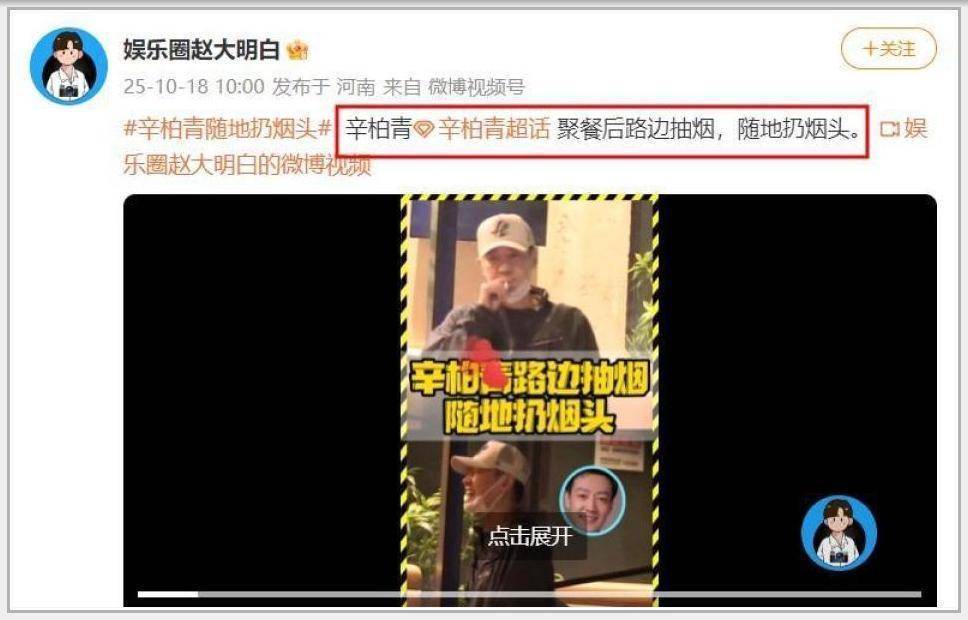 烟头在黑暗中明明灭灭,像一颗不肯安息的心。他吸得又快又深 仿佛要把这几个月积攒的闷气一口吞下去 又像是想用这点微弱的暖意 驱散骨子里透出的寒。朋友在一旁聊天 他偶尔应和几句 大部分时间只是沉默地抽着。一根烟抽完,他随手将烟头丢在地上 用脚踩了踩。这个动作,在狗仔的镜头下被无限放大 成了第二天热搜上刺眼的标题:“辛柏青聚餐后路边抽烟 随地扔烟头” 。评论区瞬间炸开了锅 有人指责他“人设崩塌”,说他作为公众人物,行为不检点;也有人心疼他,“都这样了 就让他安静待会儿吧”。