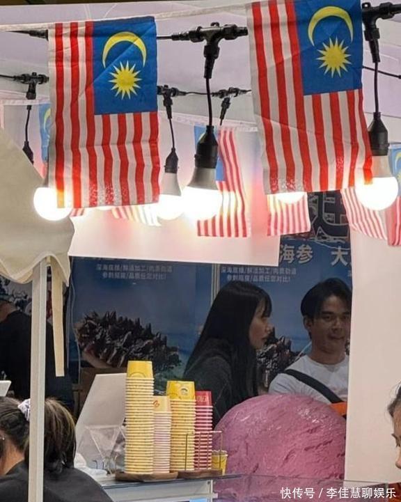 不过因为身份的缘故,这俩人在一堆人里还是挺显眼的,大家看到他们后,就都涌到一个卖马来西亚榴莲的摊位去挑东西。碰巧遇到这俩人的网友把拍的照片分享到了网上,大家看到他们在那边聊得火热。就在庞景峰察觉有人拍照的时候,他立马带着女友刘温馨赶紧溜了。