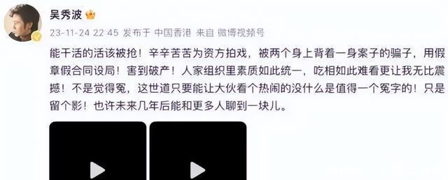 剧拍完了,投资方之一的“华利公司”突然翻脸,说自己仍持有股份,要和吴秀波分利润。 吴秀波怒了,说你们早就退出了,我还掏了自己一个亿补窟窿,哪来的资格分账? 结果,人家拿出合同,说写得清清楚楚。 吴秀波一看,合同确实写着对方还在——但那是张假的合同、用的假的公章! 谁动了手脚?他的“好兄弟”、制片人张某。这个从一开始就一起干活的朋友,在背后偷偷改了合同,配合公司演了一出空手套白狼。